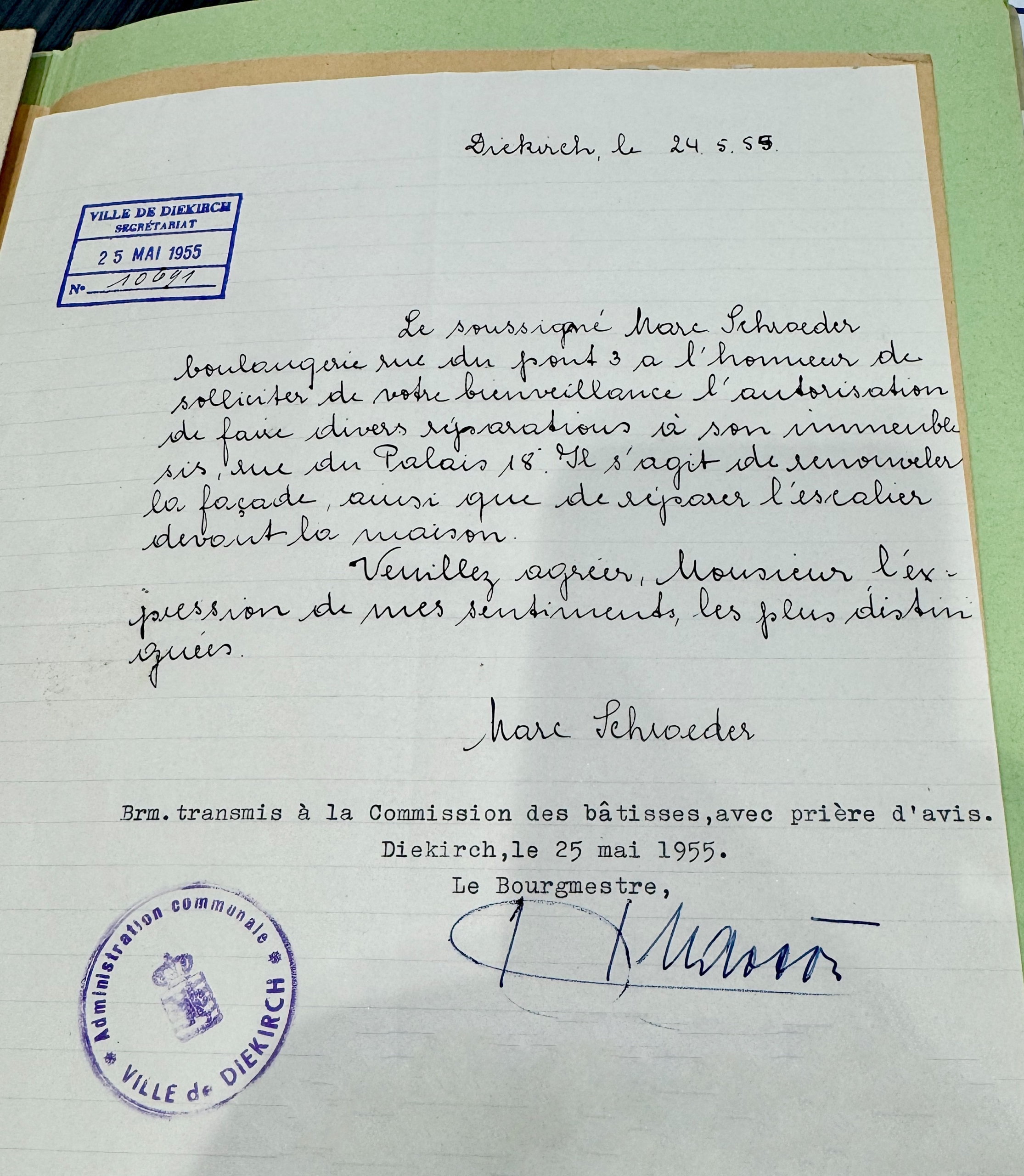 … am 19. September 1942 erhielt Robert EYSCHEN (*1898, +1947), Sekretär der Staatsanwaltschaft am Tribunal in Diekirch, vom Chef der Zivilverwaltung in Luxemburg den offiziellen Absiedlungsbescheid. Daraufhin wurde Robert EYSCHEN mit seiner Ehefrau Laure HARTZ (*1901) sowie den beiden Töchtern Lydie (*1927) und Nelly (*1929) zunächst nach Leubus (heute: Lubiaz, Polen) in das Lager 158, anschließend nach Boberstein (heute: Bobrow, Polen) in das Lager 103 umgesiedelt. Ihr leerstehendes Wohnhaus in der Palaststraße 18 wurde umgehend von der Deutschen Umsiedlungs-Treuhandgesellschaft (DUT) beschlagnahmt und an den Volksgenossen Fritz HALM, seines Zeichens Bannführer der Hitler-Jugend, vermietet. Nach der ersten Befreiung Diekirchs durch die amerikanische Armee am 11. September 1944, entlud sich der aufgestaute Hass auf das NS-Regime in mehr oder minder spontanen und gewaltlastigen Strafaktionen gegen Kollaborateure, Gielemännercher genannt, und inzwischen geflüchtete NS-Parteifunktionäre. So geschehen auch in der Palaststraße, wo eine Nazi-Uniform symbolhaft am Balkon des Hauses Nr. 18, ehemaliger Wohnsitz des HJ-Bannführers HALM, der bekanntermaßen die Wohnung der Familie EYSCHEN nach deren Umsiedlung belegt hatte, aufgeknüpft und in Brand gesetzt wurde. (bp, rg, rk, sh, as, bn, jb, 2026-02-08)
